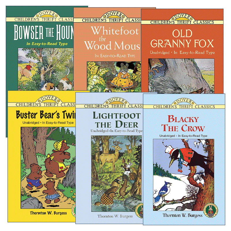 Thrift 进口英语原版 Dover 书籍 英文版 Children 桑顿·伯吉斯动物故事书系列6册 英文原版 Classics
