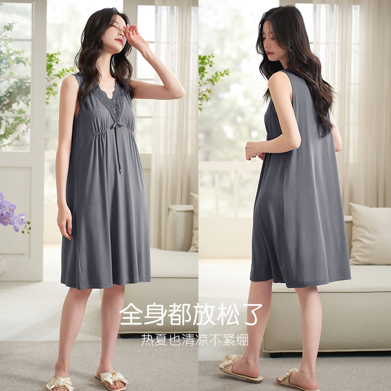 背心睡衣冰丝凉感家居服大码 无袖 连衣裙 薄款 轩靓莫代尔睡裙女夏季