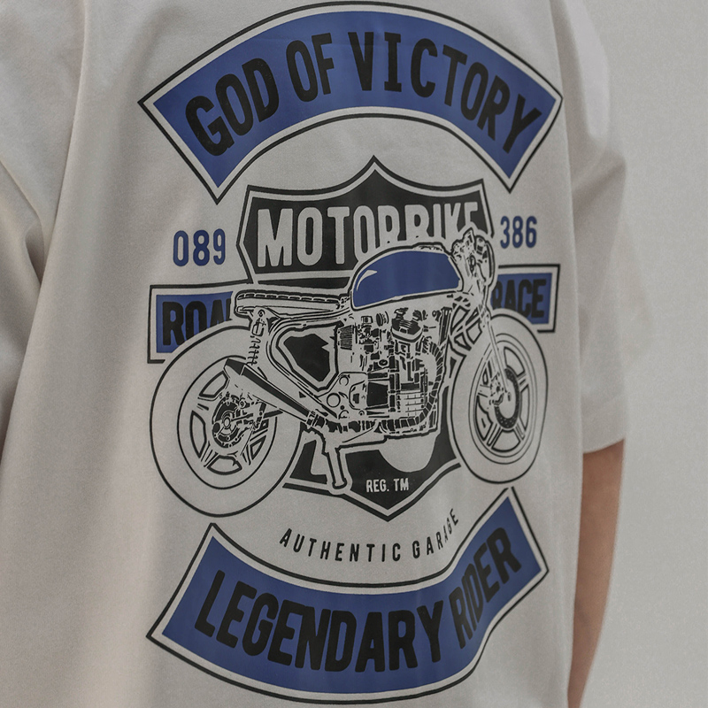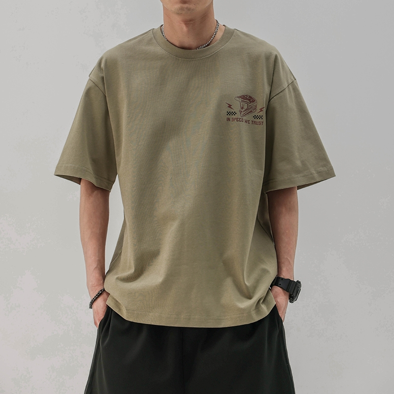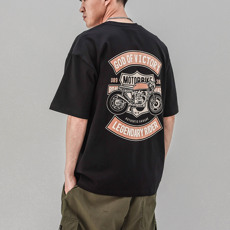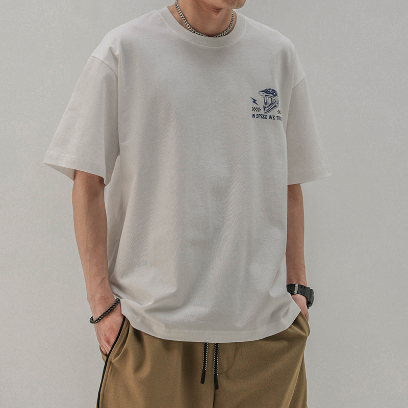 设计感宽松百搭机车半袖 美式 上衣 夏季 潮牌字母印花T恤男纯棉短袖