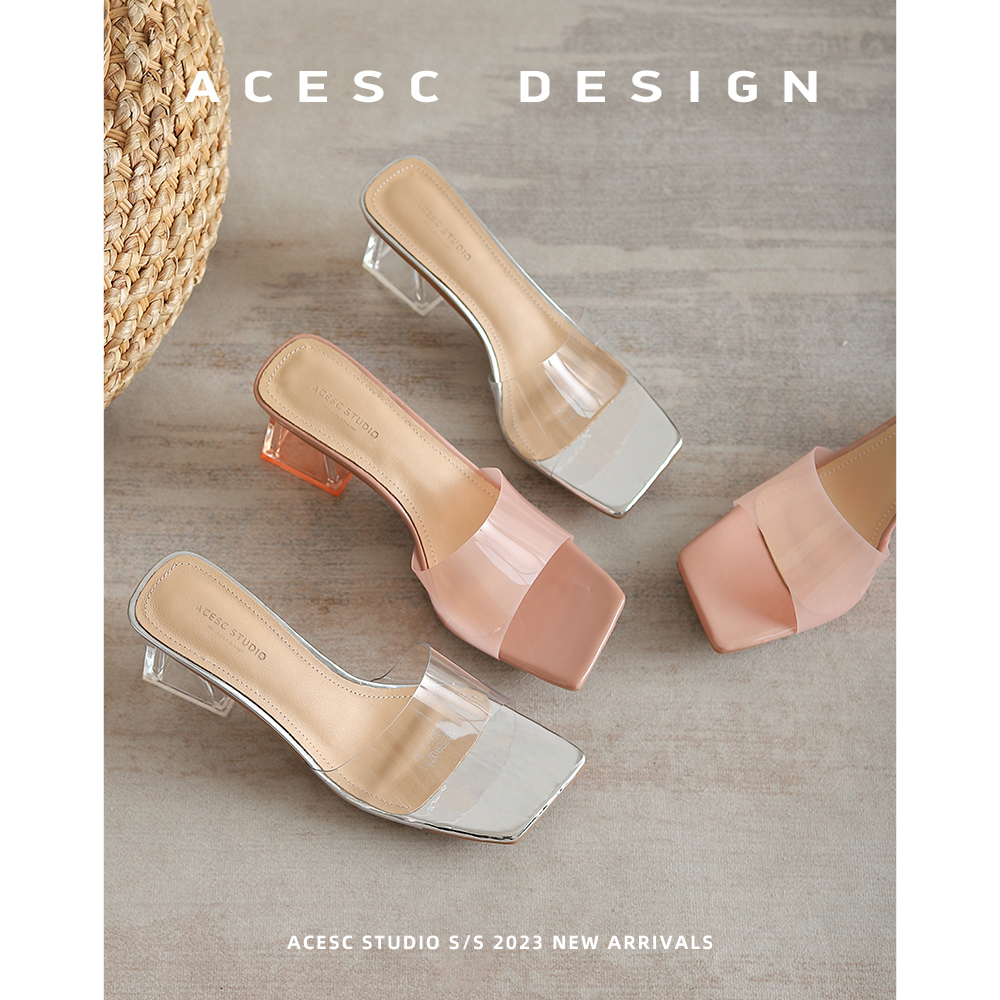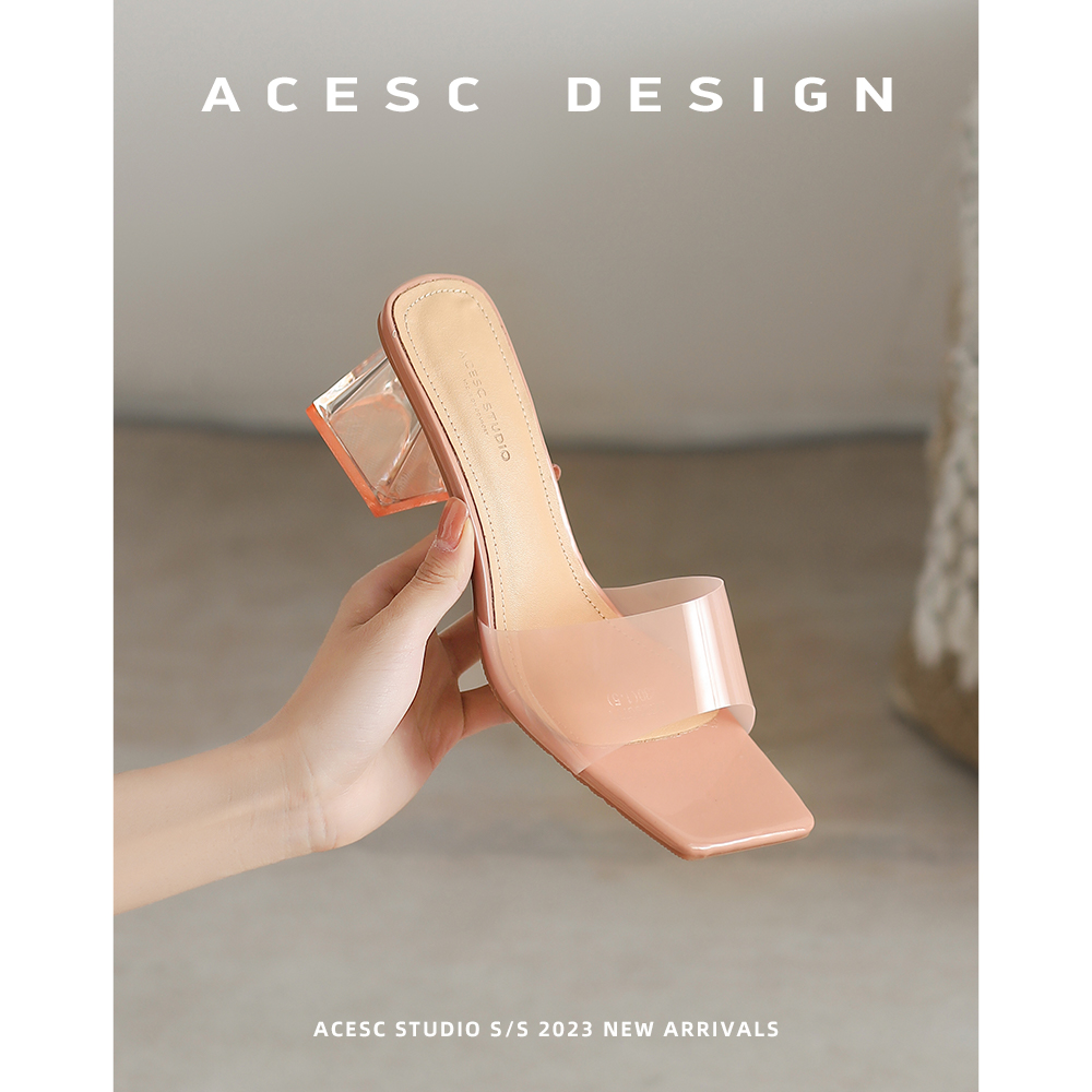 懒人水晶透明凉鞋 艾斯臣真皮凉拖鞋 高级感时尚 女2024新款 外穿夏季