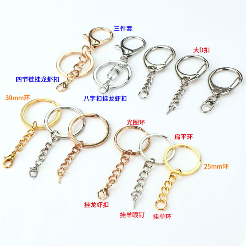 饰品玩偶diy钥匙扣配件钩针挂绳挂件链条金属龙虾挂扣锁匙带圈环