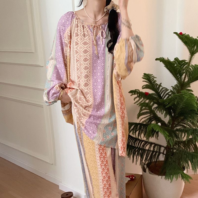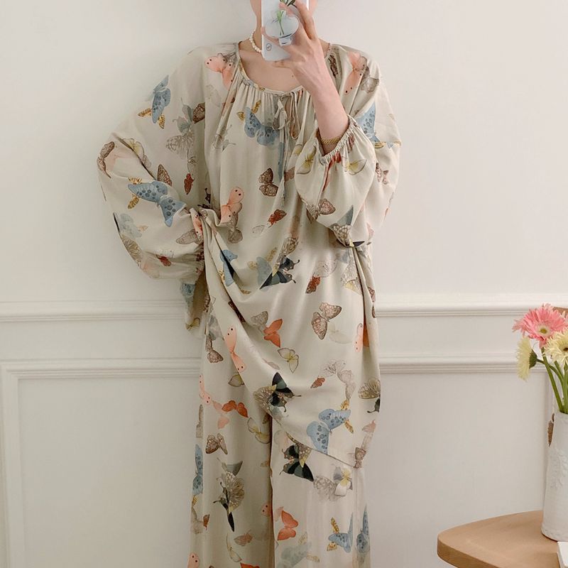 宽松大码 印花长裤 胖MM可穿200斤家居服 薄款 春秋天棉绸睡衣女夏季