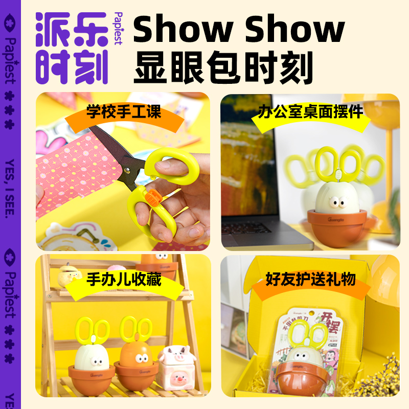 广博派乐时刻迷你不倒翁萝卜剪刀小型手工专用家用办公用品文具锁边便携高颜值美工特氟龙不粘胶剪子带保护套