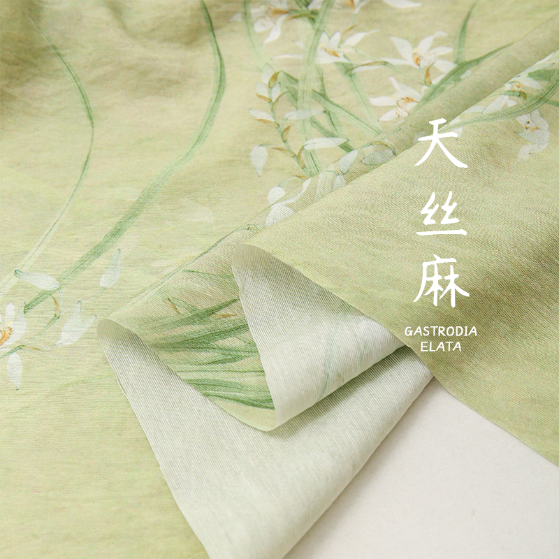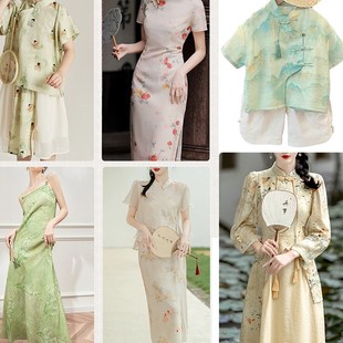 印花服装 天丝麻布料新中式 薄款 衬衫 面料 连衣裙仕女图国风旗袍夏季