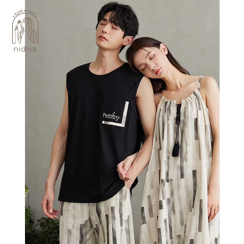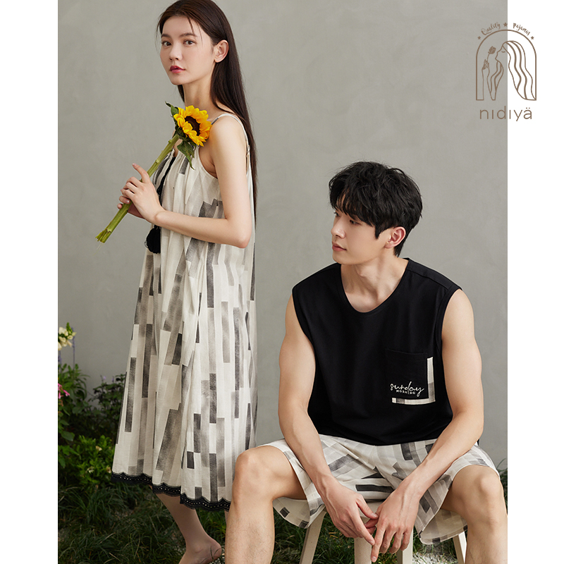 家居服套装 背心短裤 睡裙纯棉吊带裙男士 妮狄娅2024情侣睡衣女夏季