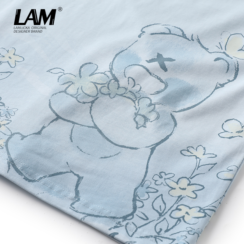 半袖 宽松休闲薄大码 潮牌男情侣夏季 LAMLICKA日系小熊印花圆领短袖