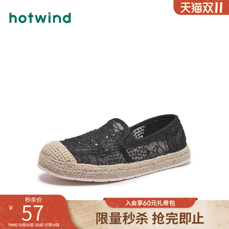 秋季 Pansy盼喜日本女鞋 一脚蹬轻便舒适透气百搭厚底飞织渔夫板鞋