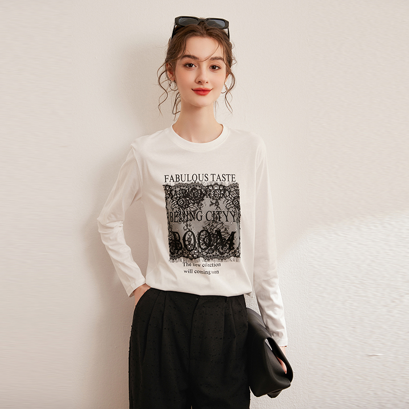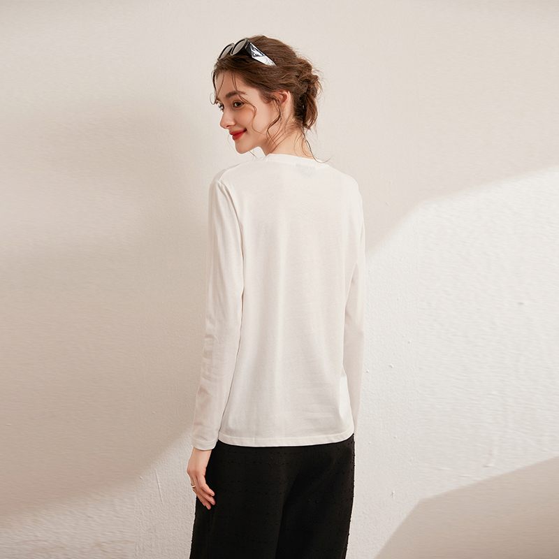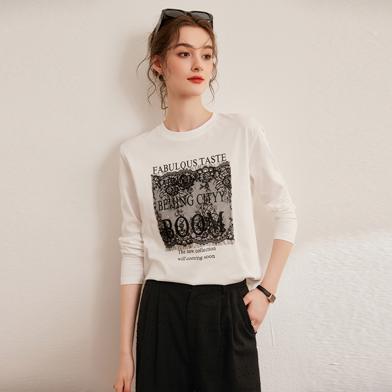 100%纯棉长袖 宽松遮肉显瘦套头外穿拼接薄卫衣B T恤上衣女秋冬韩版