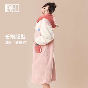 可外穿休闲保暖家居服 睡衣可爱连帽开衫 畹町睡袍女秋冬季 毛绒长款