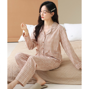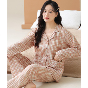 家居服套装 猫人纯棉睡衣女春秋冬季 开衫 长袖 带胸垫可外穿 2025新款
