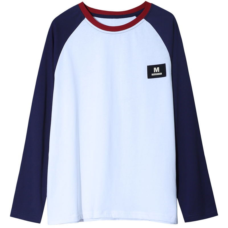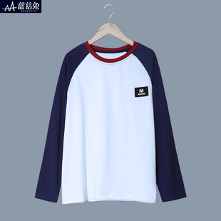纯棉长袖 冬撞色上衣 T恤少女春秋初中高中学生外穿内搭宽松打底衫