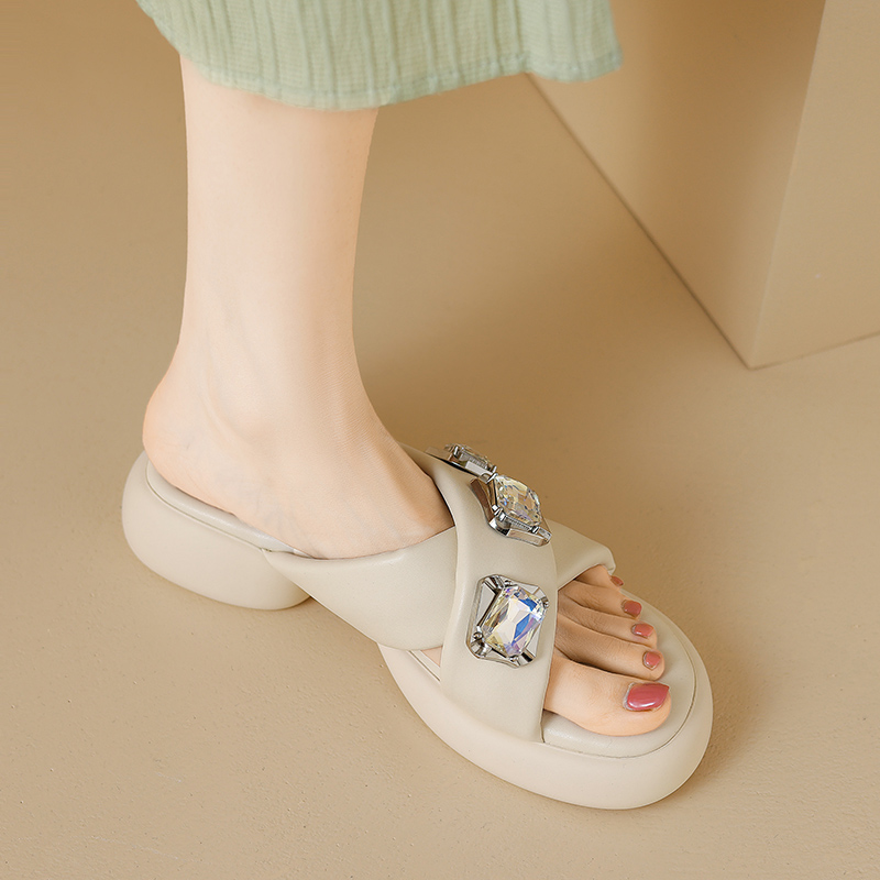 配裙子大码 松糕厚底软底水钻凉鞋 41一43 女夏外穿时尚 踩屎感凉拖鞋