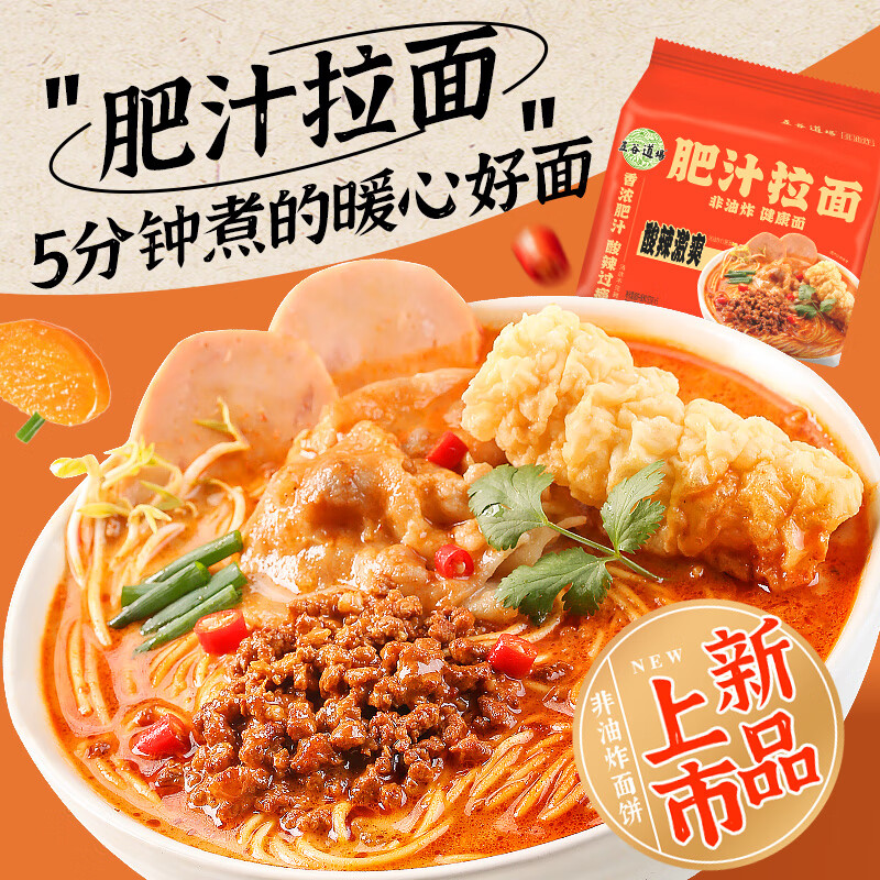 五谷道场非油炸方便面整箱24袋装 多口味酸笋肥牛肥汁拉面番茄牛腩