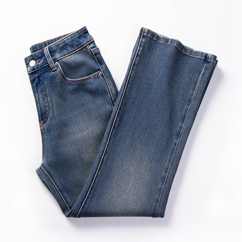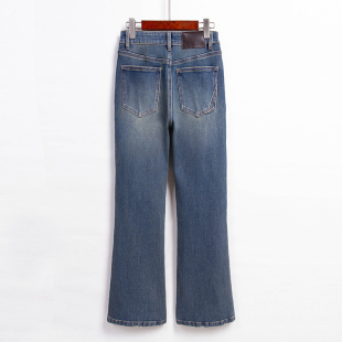 八九分直筒小个子加绒裤 窄版 女秋冬高腰显瘦修身 复古蓝烟管牛仔裤