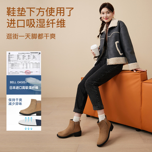 百丽切尔西靴女靴冬季 保暖英伦风厚底短靴加绒烟筒靴子X2G2DDD3