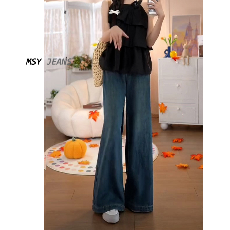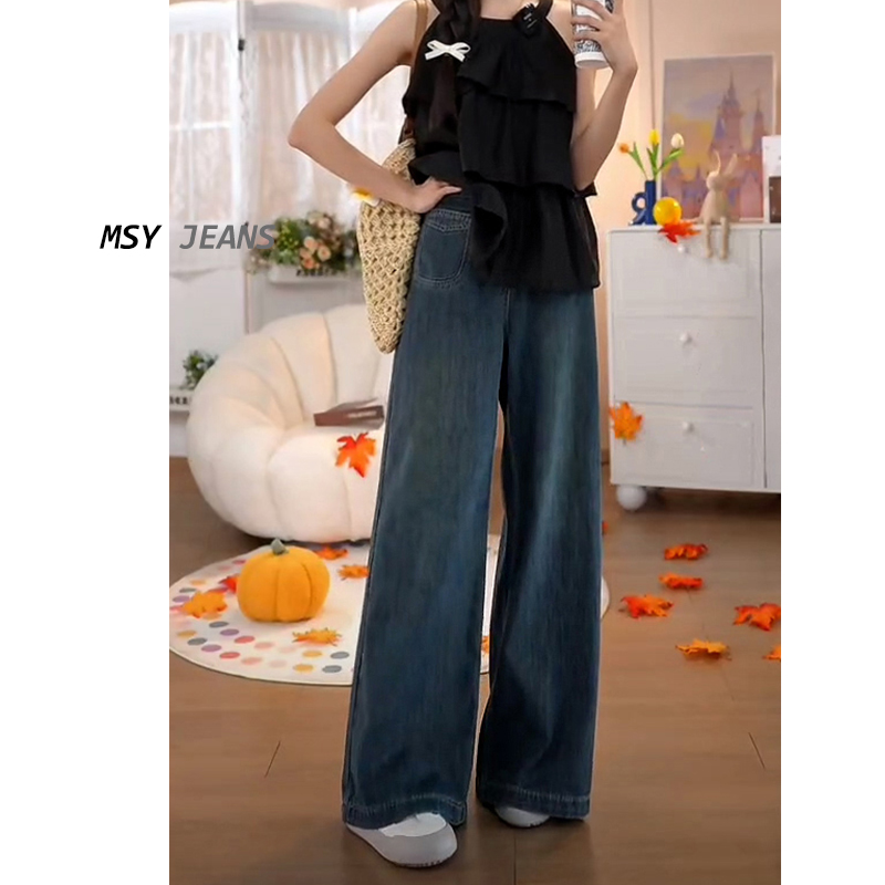 软牛仔裤 宽松直筒早秋高腰拖地裤 女复古阔腿裤 2024新款 薄 夏季 爆款