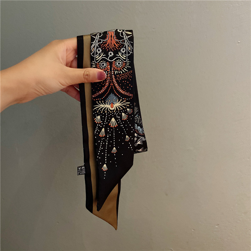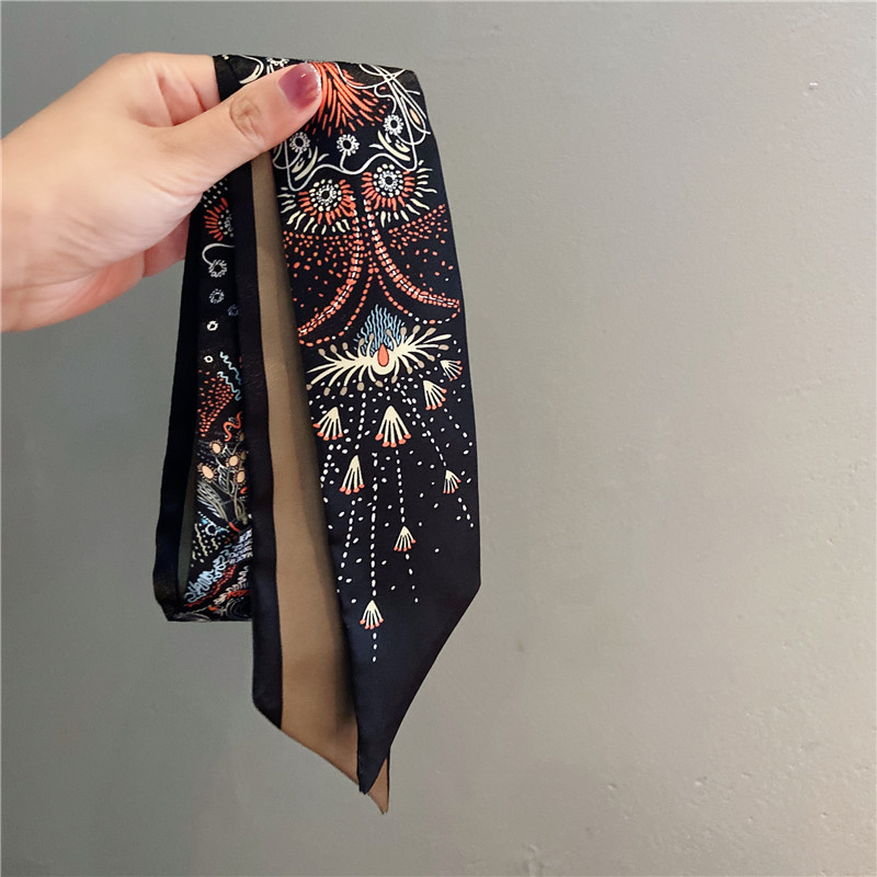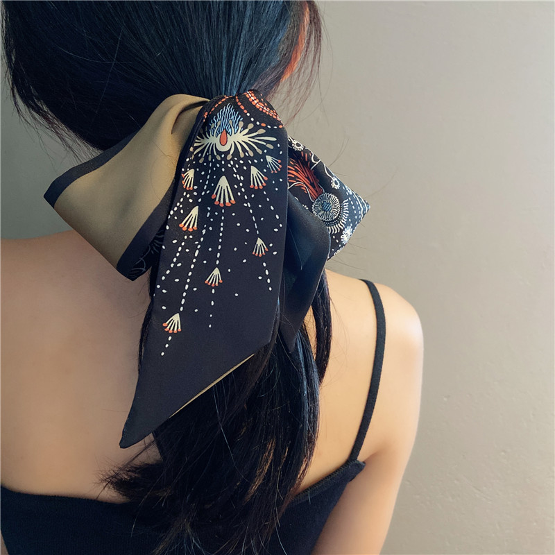 发带烟花丝巾头饰女多功能绑发森系超仙法式 黑色复古飘带百搭丝带