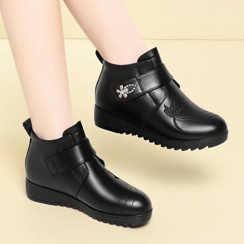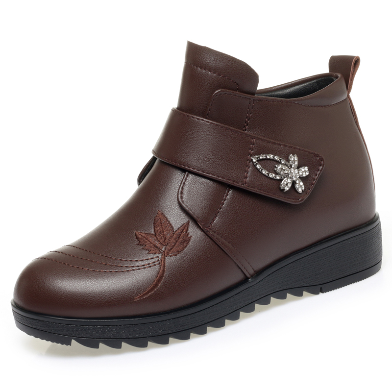 保暖真皮加绒防滑平底中老年老人短靴加厚羊毛皮鞋 妈妈棉鞋 女冬季