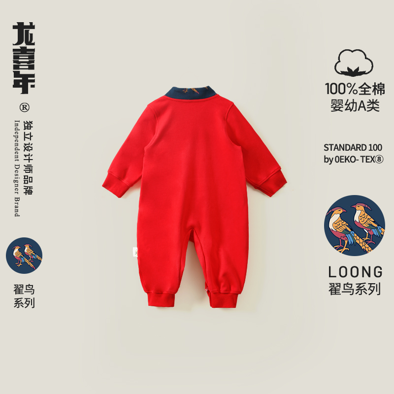龙年中式 婴儿少爷百岁满月宝宝红衣服男礼服国风女百天宴连体秋冬