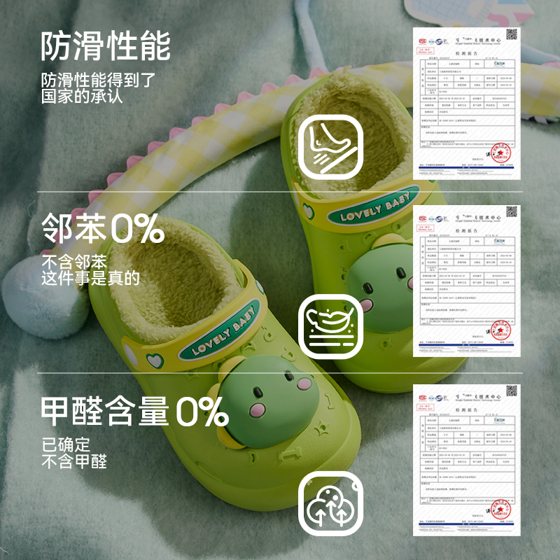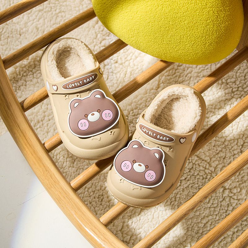 男童女童室内防水婴幼儿小童家居毛毛鞋 小熊宝宝棉拖鞋 儿童冬季