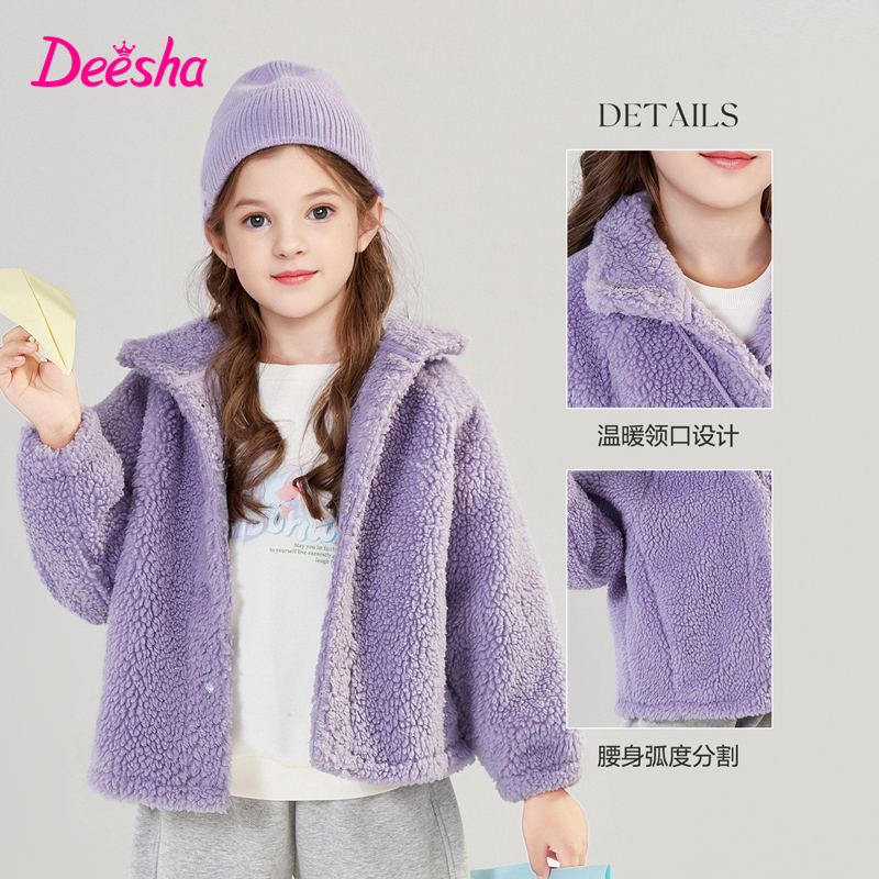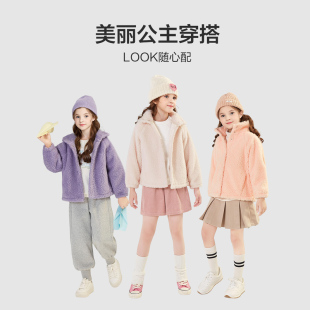 大童儿童加厚摇粒绒上衣迪莎 新款 笛莎官方童装 女童外套加绒秋冬季