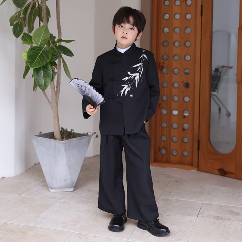 套装 国风中山装 儿童帅气黑色立领西服两件套秋 2025新款 男童新中式