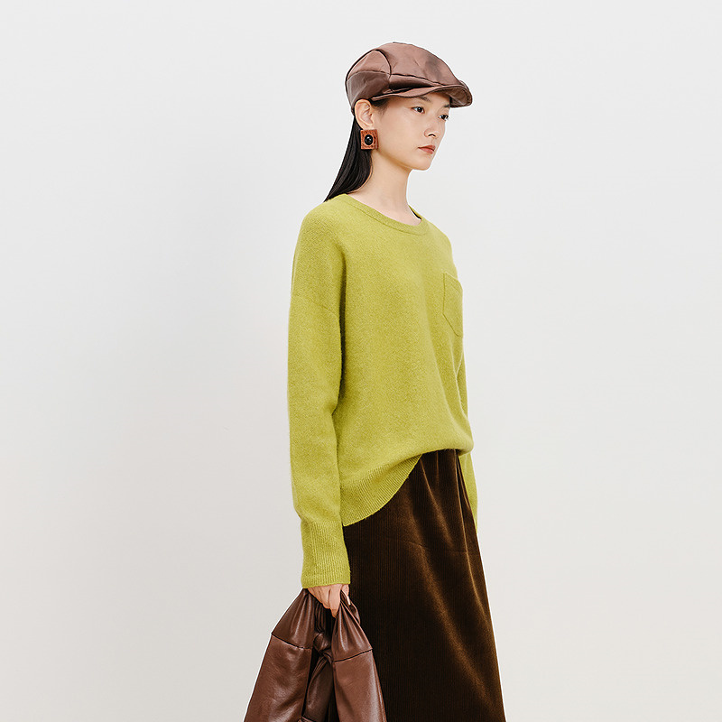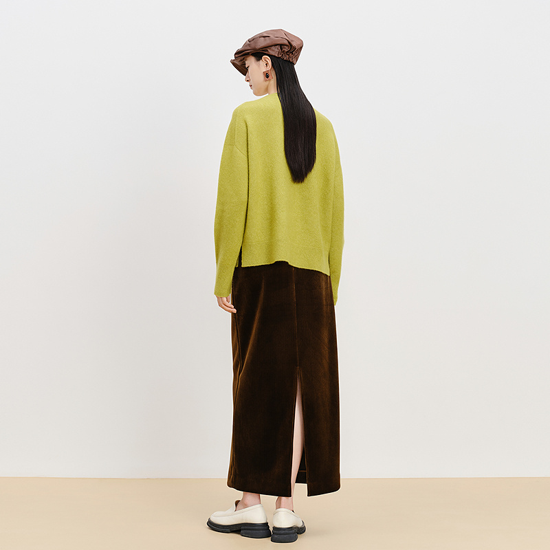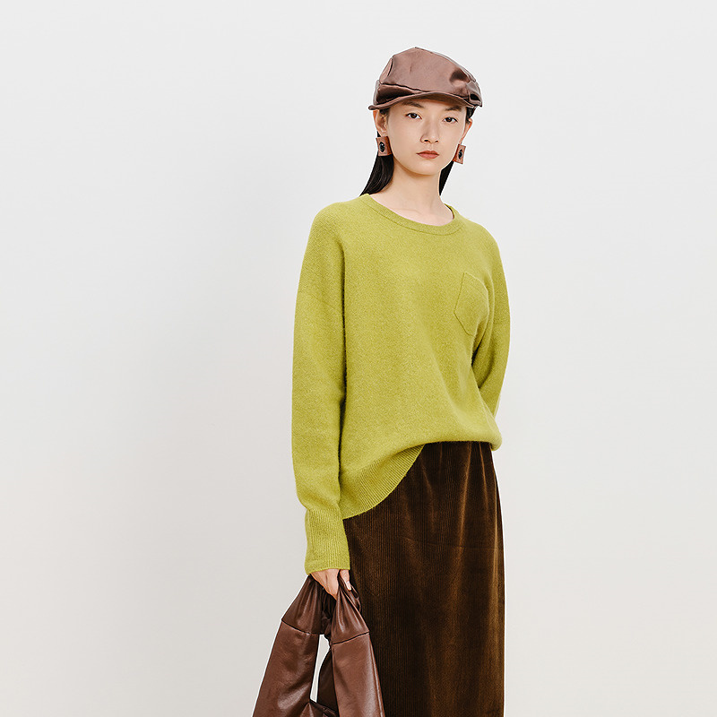 精纺羊毛针织圆领宽松套头衫 AUM噢姆冬季 休闲上衣女 商场同款