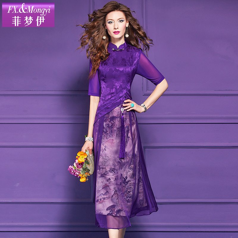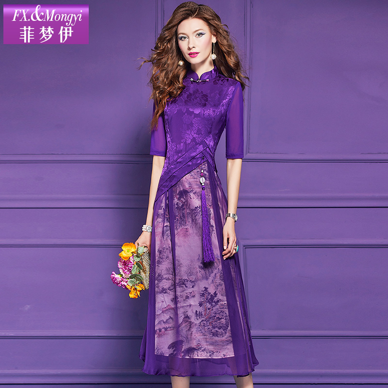 改良旗袍裙 国风优雅端庄修身 菲梦伊水墨画印花新中式 连衣裙女夏装
