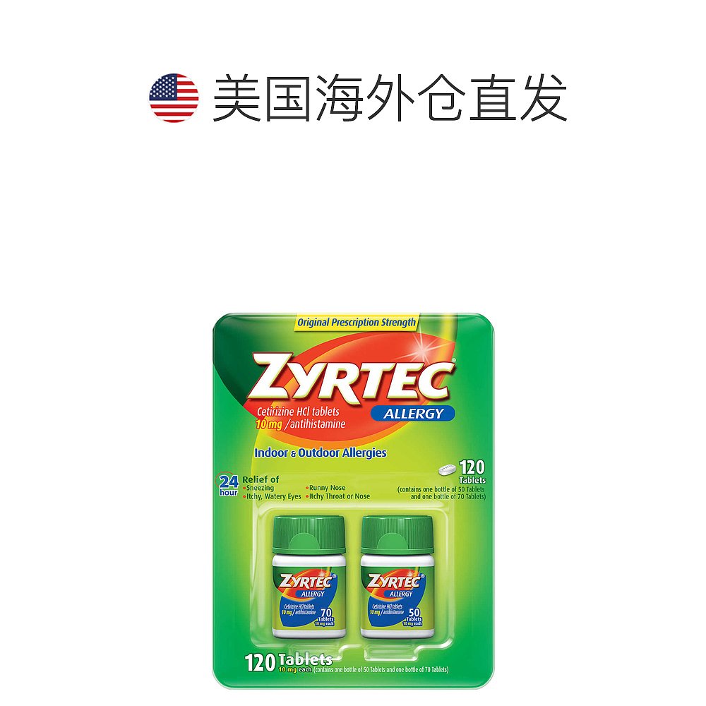美国直邮Zyrtec抗过敏片室内室外过敏呼吸道过敏流鼻涕眼睛过敏