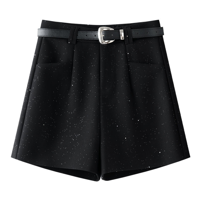 秋季 女2025新款 爆款 宽松阔腿裤 灰色亮片西装 高腰显瘦A字热裤 短裤