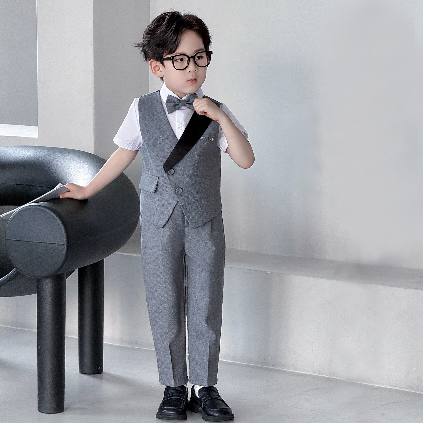 新款 夏季 小主持人花童男童西服英伦风高端钢琴演出服 套装 儿童西装