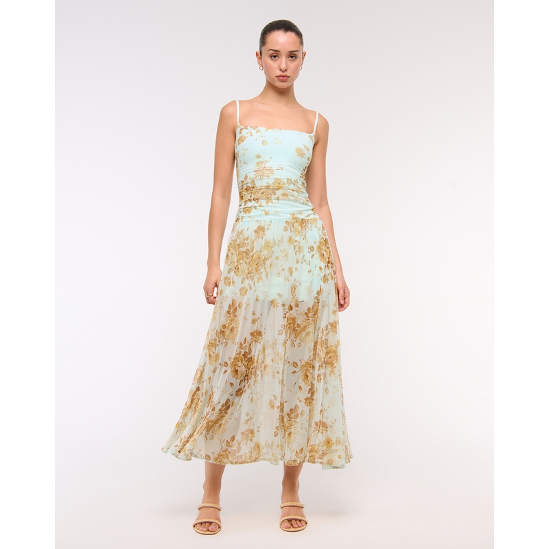 度假风露肩吊带连衣裙长裙159 气质修身 6254 25夏法式 AF女装
