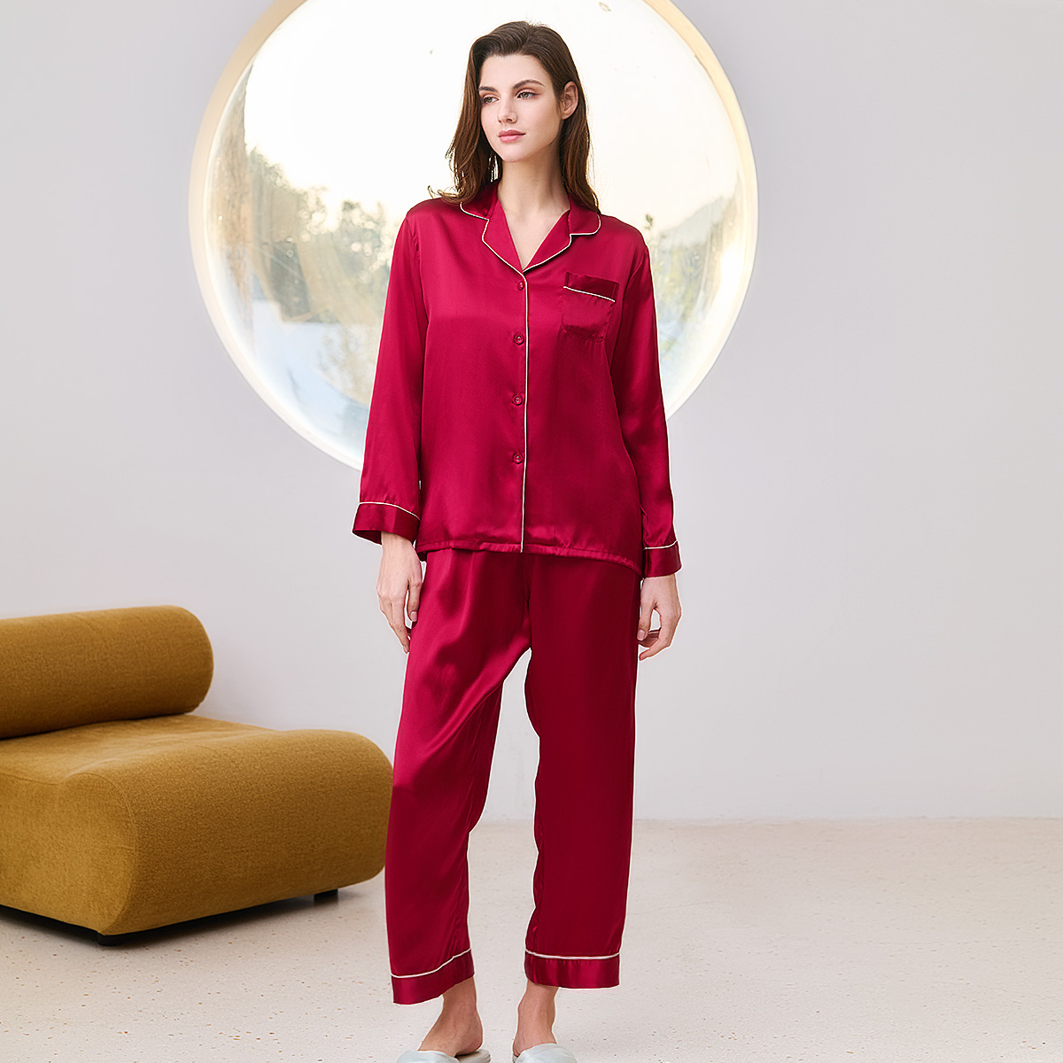 舒适宽松家居服长袖 伊维斯条纹睡衣套装 长裤 慵懒线条