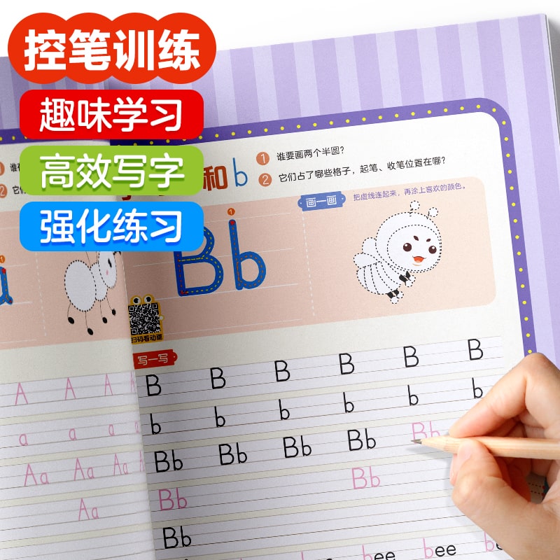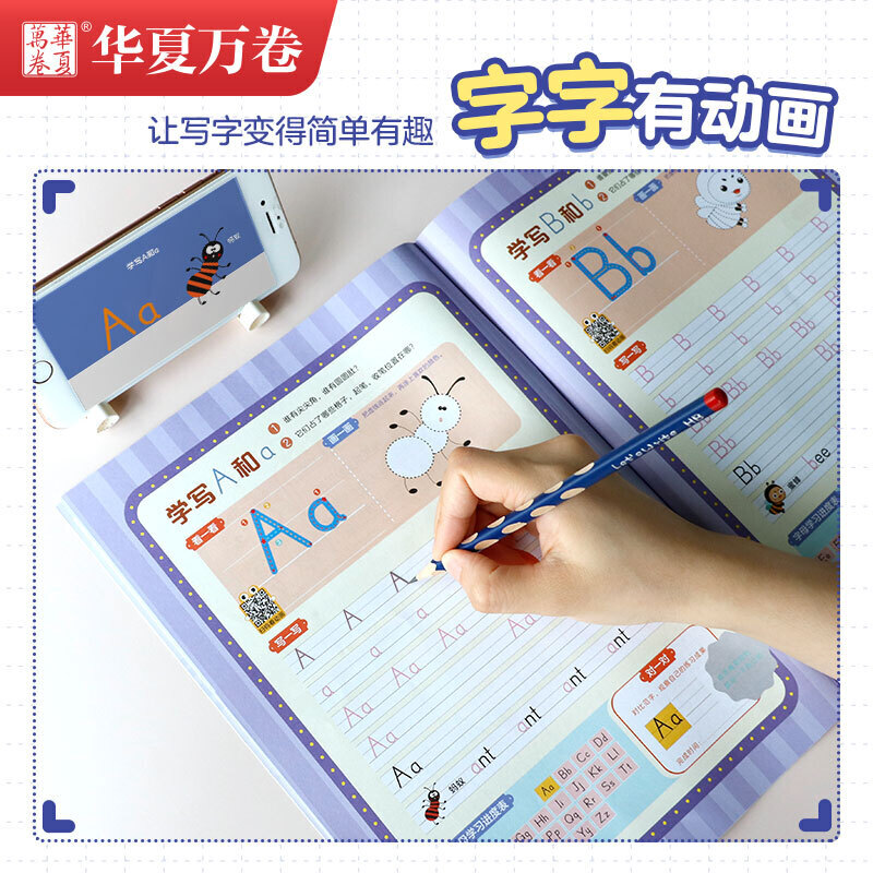 配视频动画 华夏万卷英文字帖 幼小衔接练字帖棍棒体写字本 6岁幼儿园学前26个英语字母描红练习本习字本带卡通贴纸
