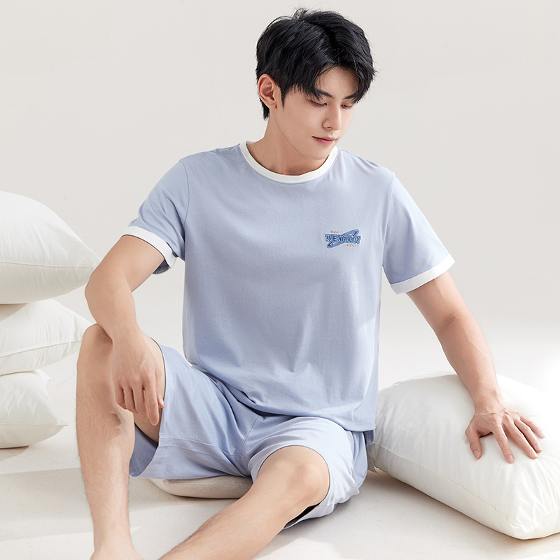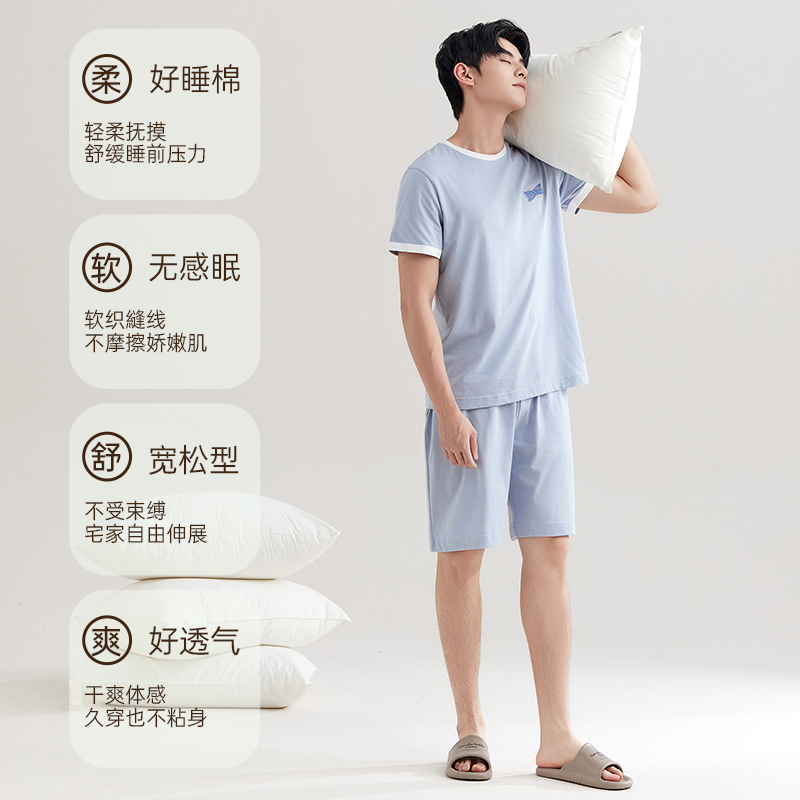 圆领短袖 短裤 套装 玛伦萨纯棉睡衣男款 男士 夏季 大码 家居服 2025新款
