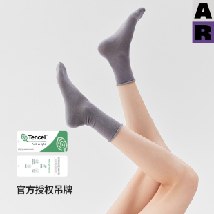 秋中筒袜薄白色袜子女 AR桑蚕丝莫代尔云朵卷边袜2025新款 紫标