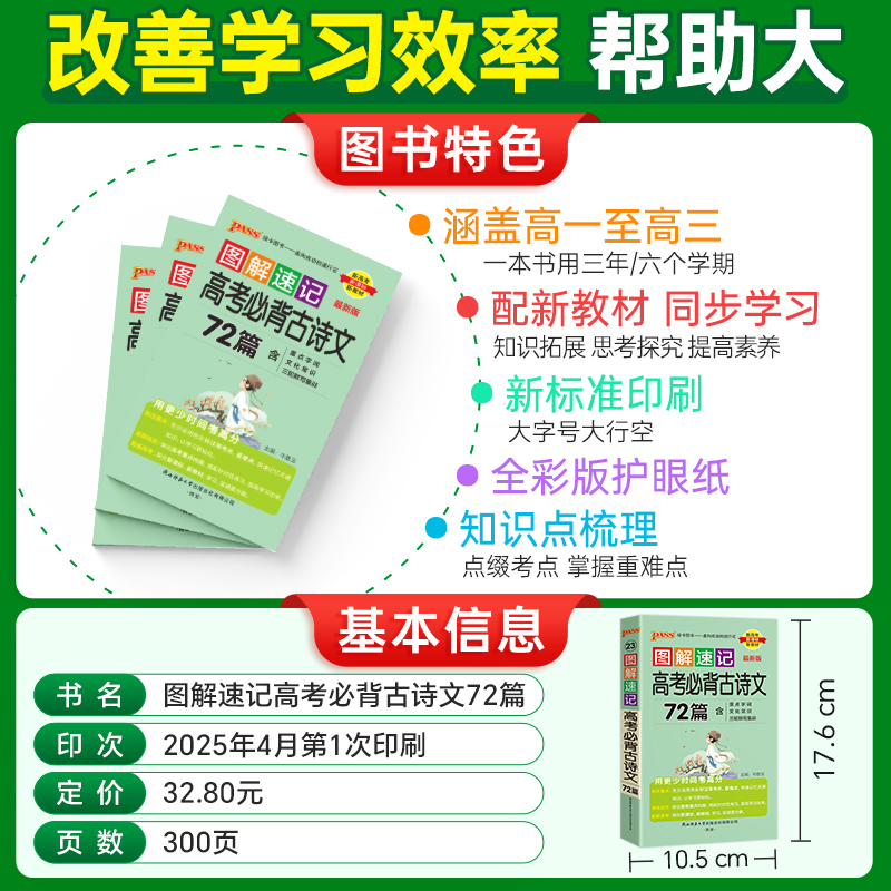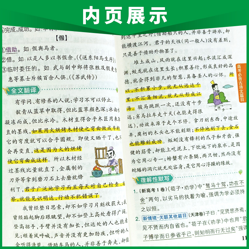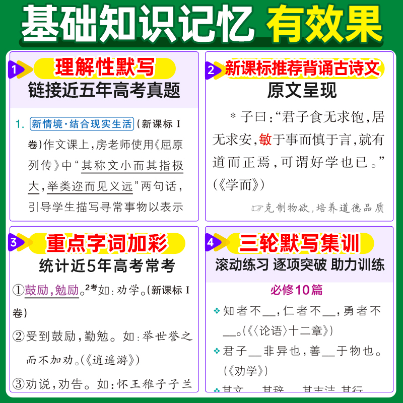 必修 人教RJ版 选修高一二三高考语文阅读理解翻译背诵复习口袋书 新教材图解速记高考古诗文72篇 26新版