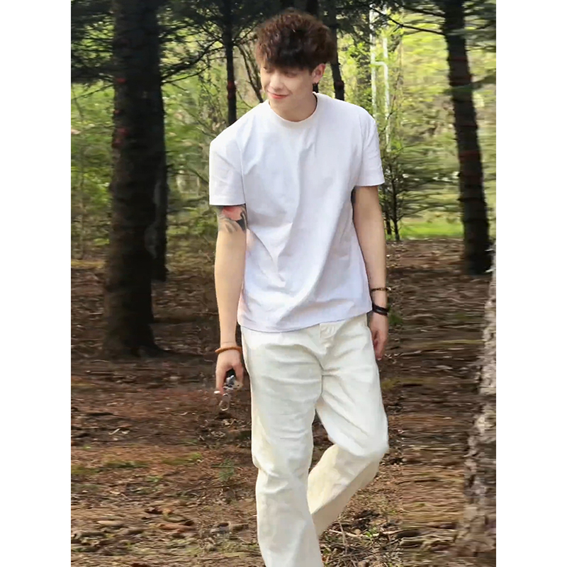 三分半袖 索罗娜冰感正肩短袖 t恤纯棉美式 高级感显肌肉修身 男夏季