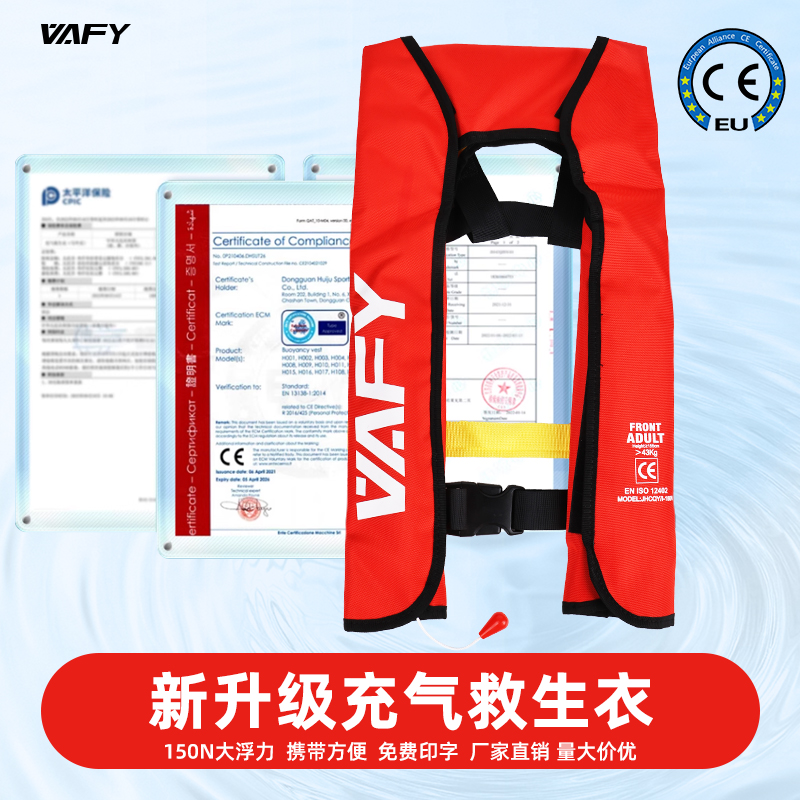 VAFY便携式 救生衣成人大浮力背心路亚海钓鱼专用轻薄自动充气马甲