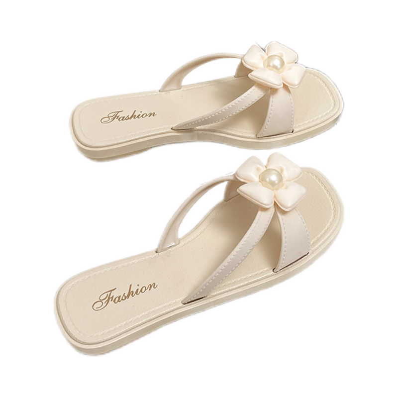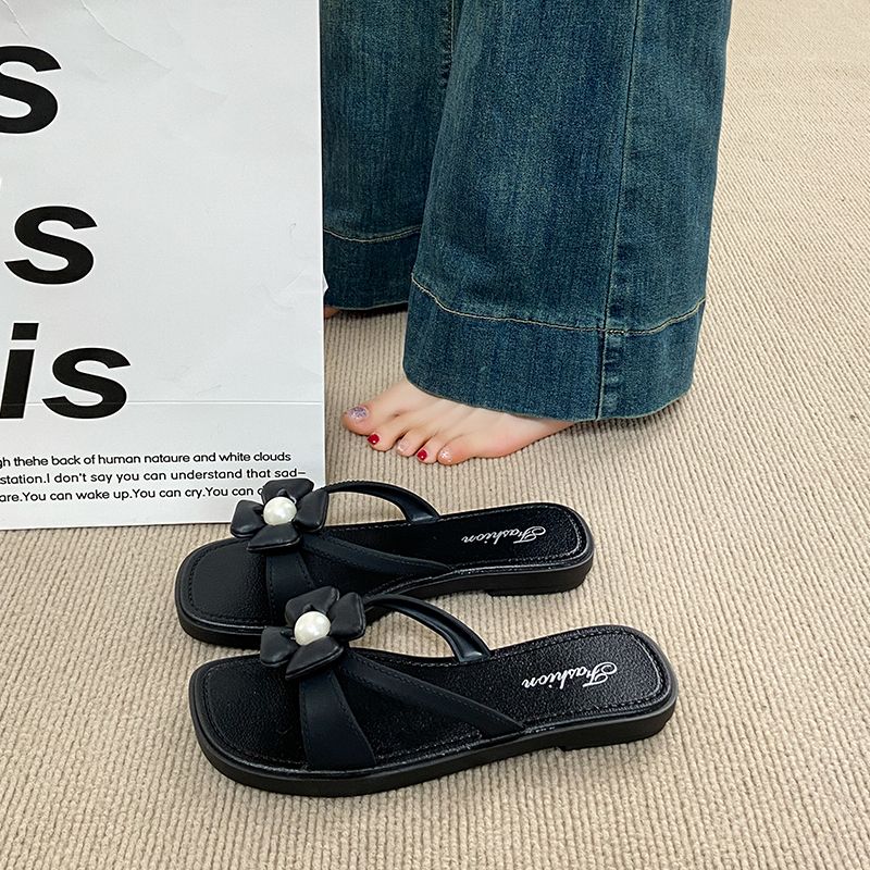 踩屎感拖鞋 仙女风平底花朵配裙子一字拖沙滩凉拖 女夏外穿2025新款