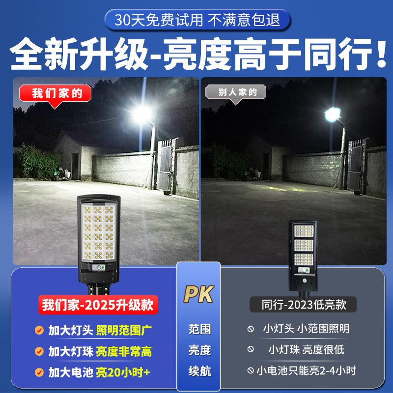 2025新款 太阳能户外灯庭院灯人体感应一体家用院子照明大功率路灯