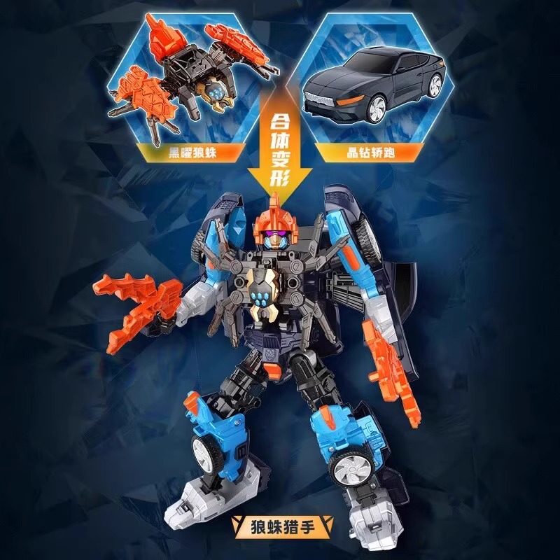 咖宝车神之晶兽战队飞鹰战士狼蛛猎手男孩卡合体变形汽车玩具金刚