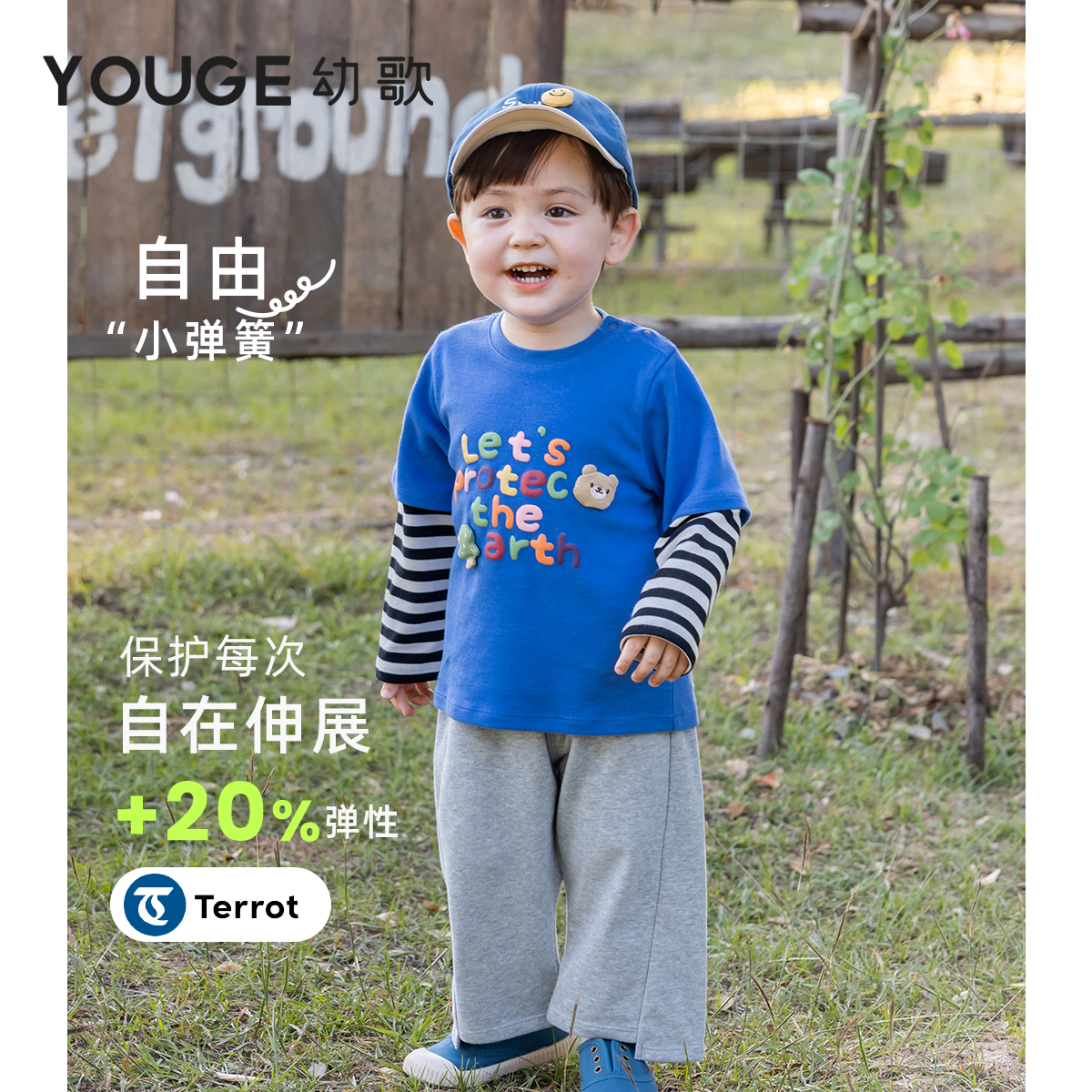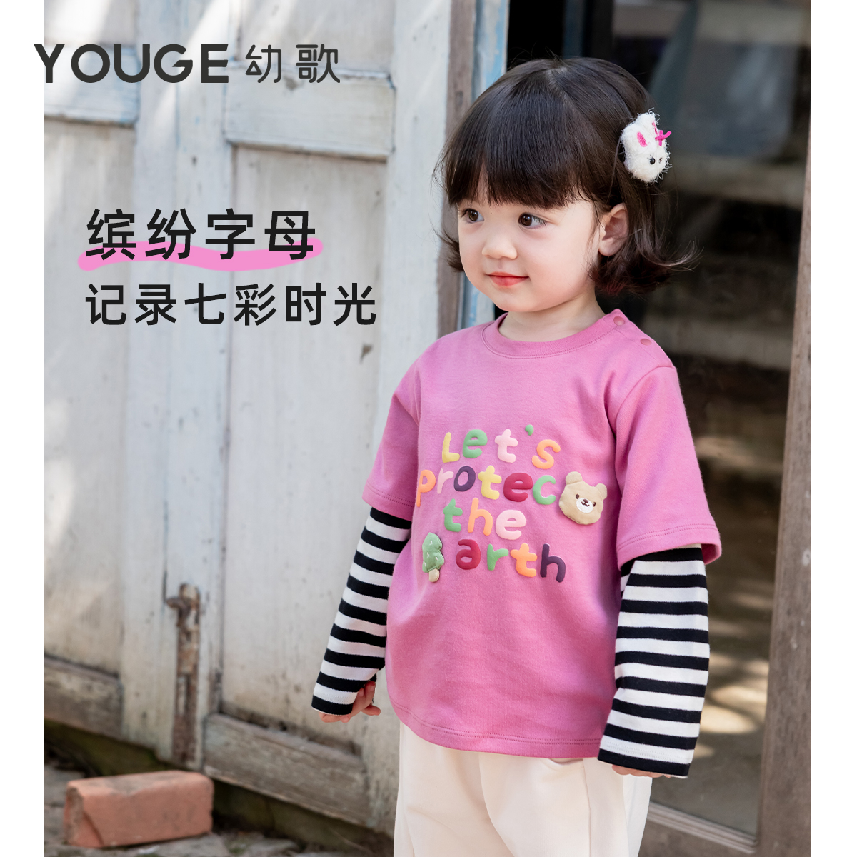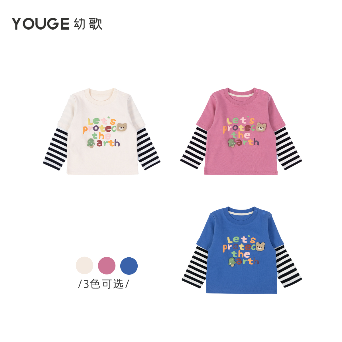 儿童圆领趣味卡通T 幼歌婴幼儿缤纷字母假两件长袖 GOTS有机棉
