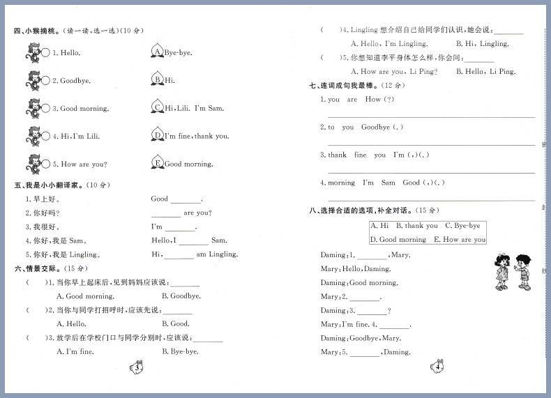 三起点4年级上册同步试卷单元 精编全程达标测试卷英语四年级上册外研版 月考期中期末试卷 本 老版