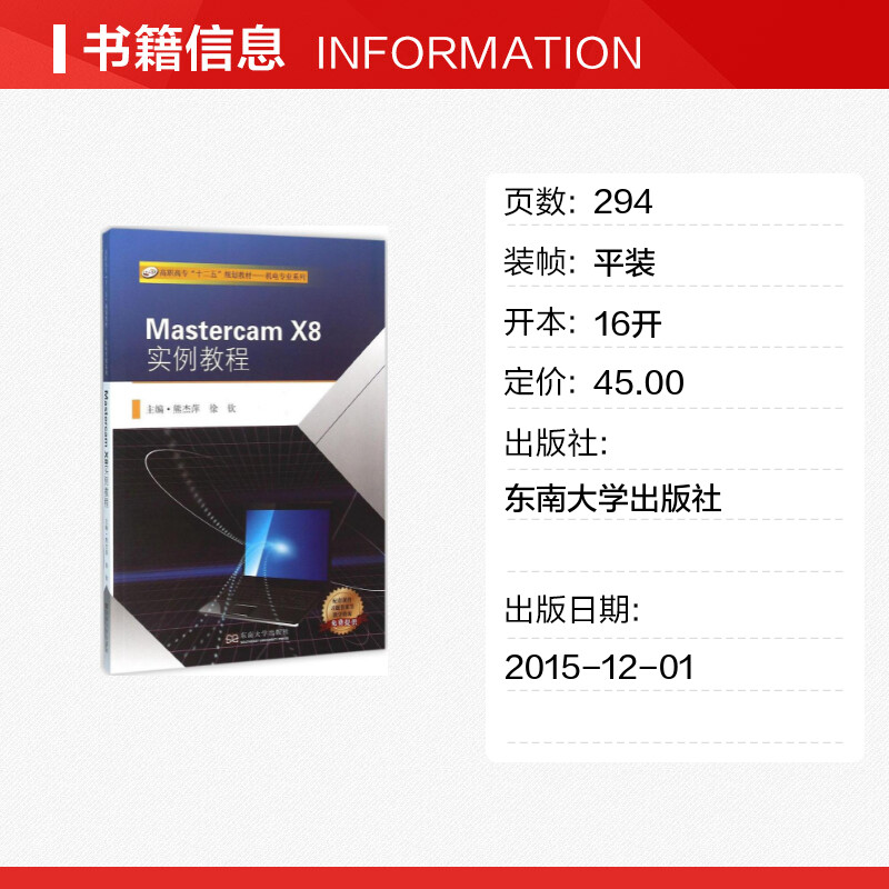 新 X8实例教程 图形图像 Mastercam 专业科技 东南大学出版 徐钦 图书籍 熊杰萍 社 主编 新华书店正版 多媒体
