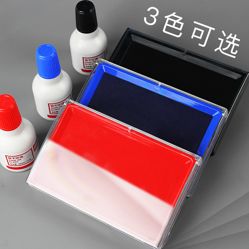 得力红色印台油性印台大号 印泥盒印油秒干速干财务会计速干蓝色黑色印章按手印指纹办公用品9864 快干
