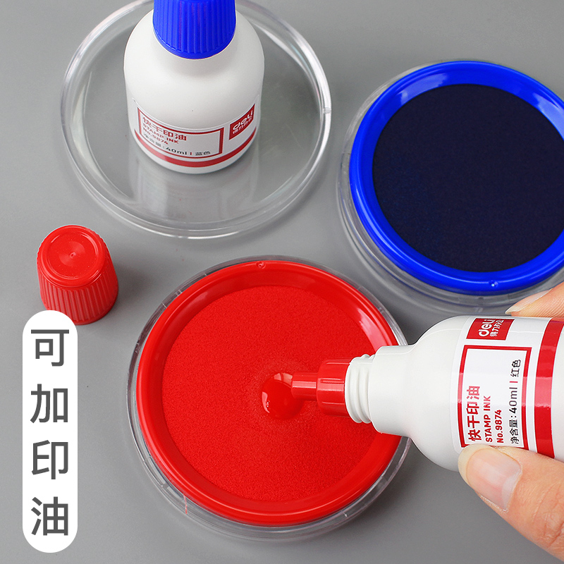 得力印泥印台快干办公用品秒干印油红色蓝色印章财会用盖章按手印