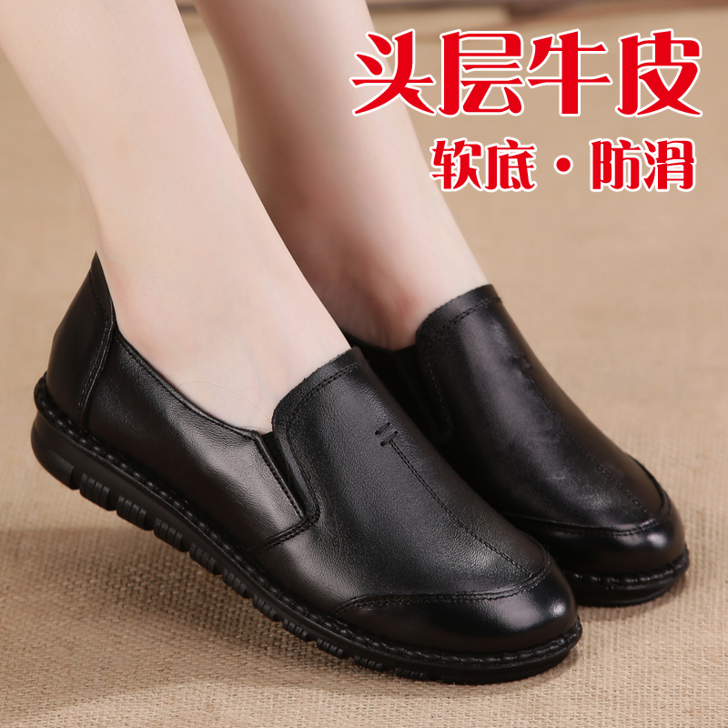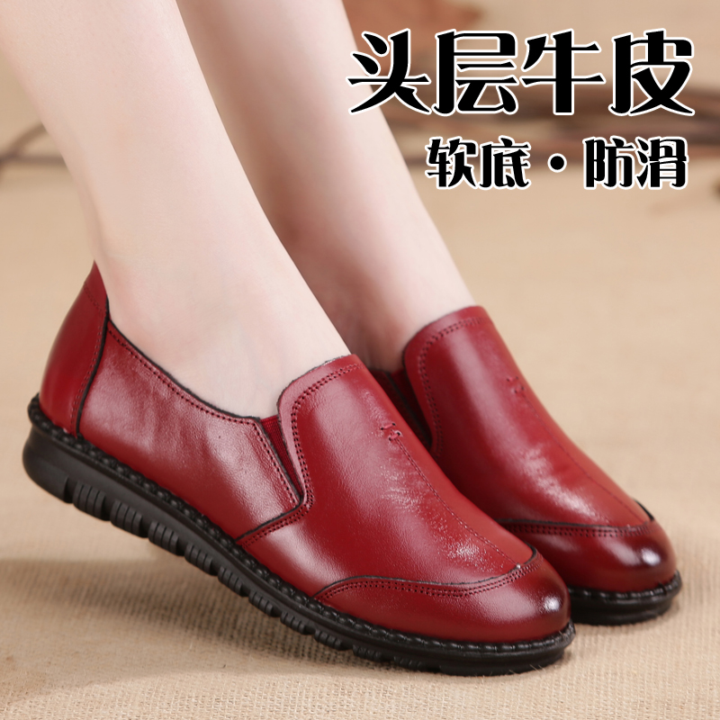 子女老人皮鞋 平底防滑中年人鞋 真皮软底舒适单鞋 闰月牛皮妈妈鞋