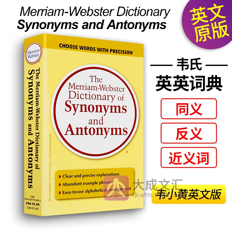 英文版 Merriam and 英英词典英语词汇单词书 antonyms synonyms 韦氏同义反义近义词字典词典韦小黄 Dictionary 英文原版 Webster