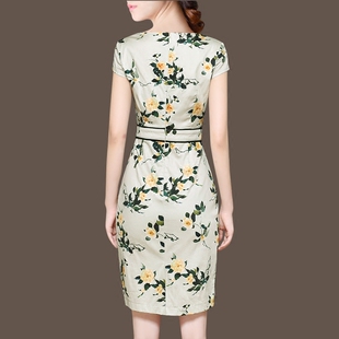 v领长袖 2025新款 显瘦休闲收腰气质短裙胖mm 碎花连衣裙女秋季 大码